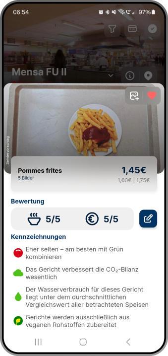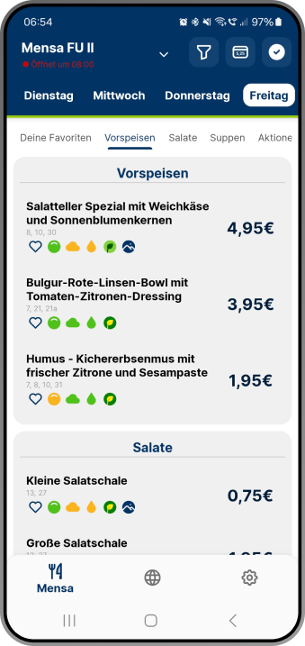 Markiere deine Lieblingsgerichte und lasse sie dir ganz oben im Mensaplan anzeigen, um sie jederzeit im Blick zu haben.