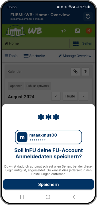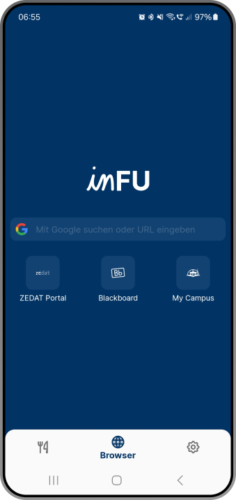 Nutze den integrierten Browser um Überblick über alle Portale der FU zu haben.