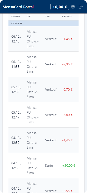 Das MensaCard Portal ist für Personen mit der MensaCard des studierendenWERKs Berlin der Weg alles über die Karte online einzusehen.