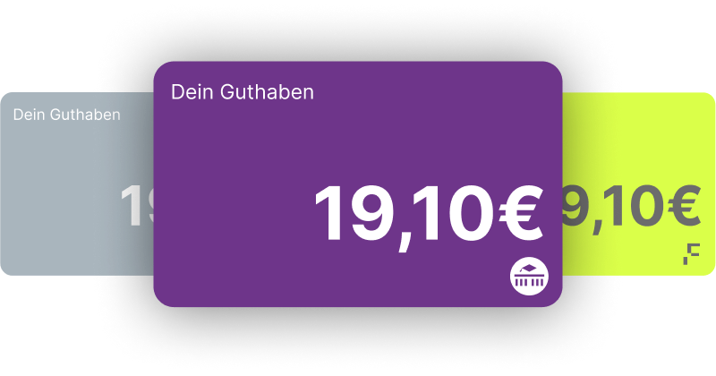 Sieh dein Guthaben direkt in praktischer Kartenform, so weißt du immer ob du dir PomKa leisten kannst.